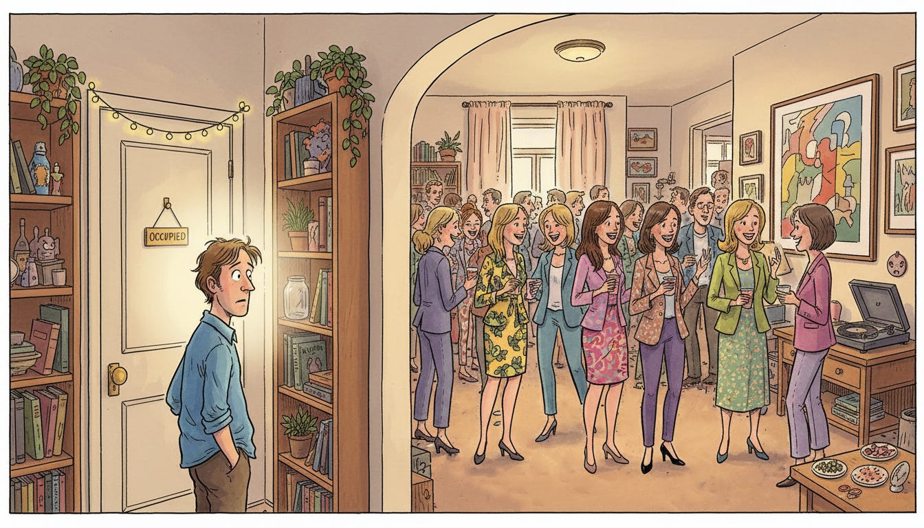 At a party, I had been talking to one of them, and for a brief, irresponsible moment, I thought things were going well. Light banter. Eye contact. The fragile beginnings of what could generously be described as potential.